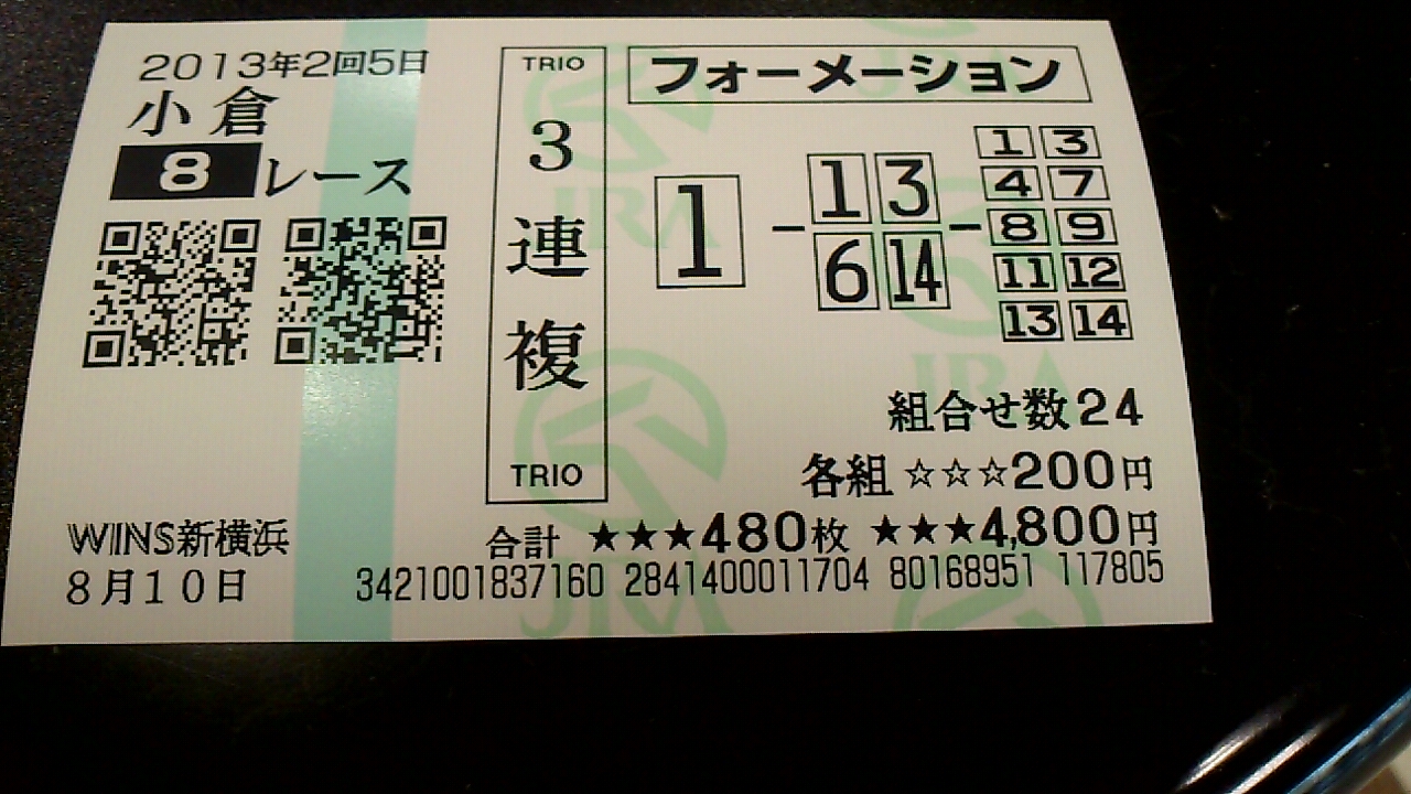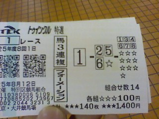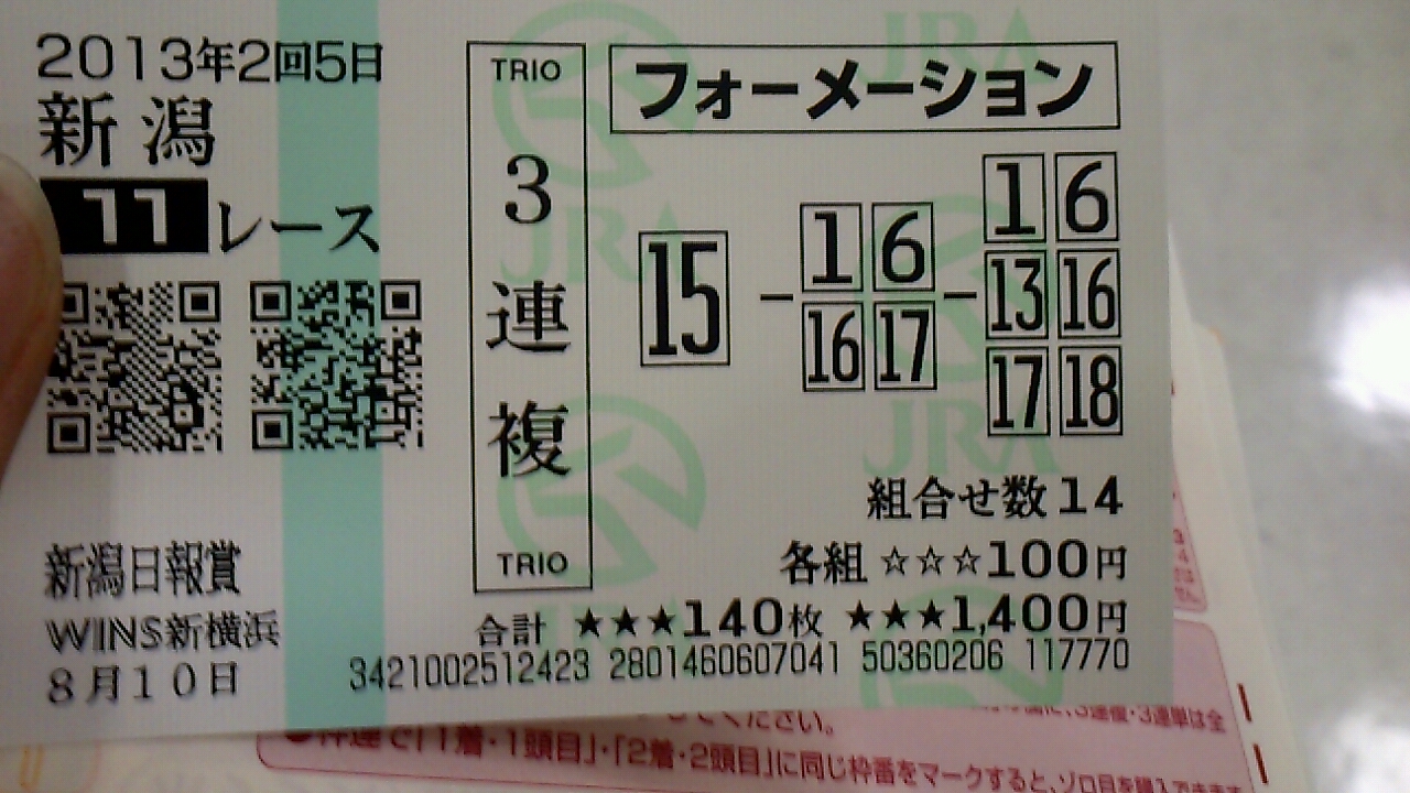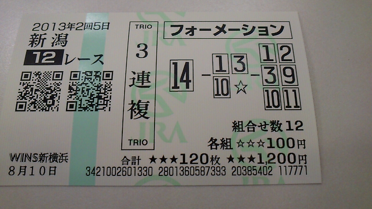 14 新潟 1R 3連複 08-12-13 100円 0円