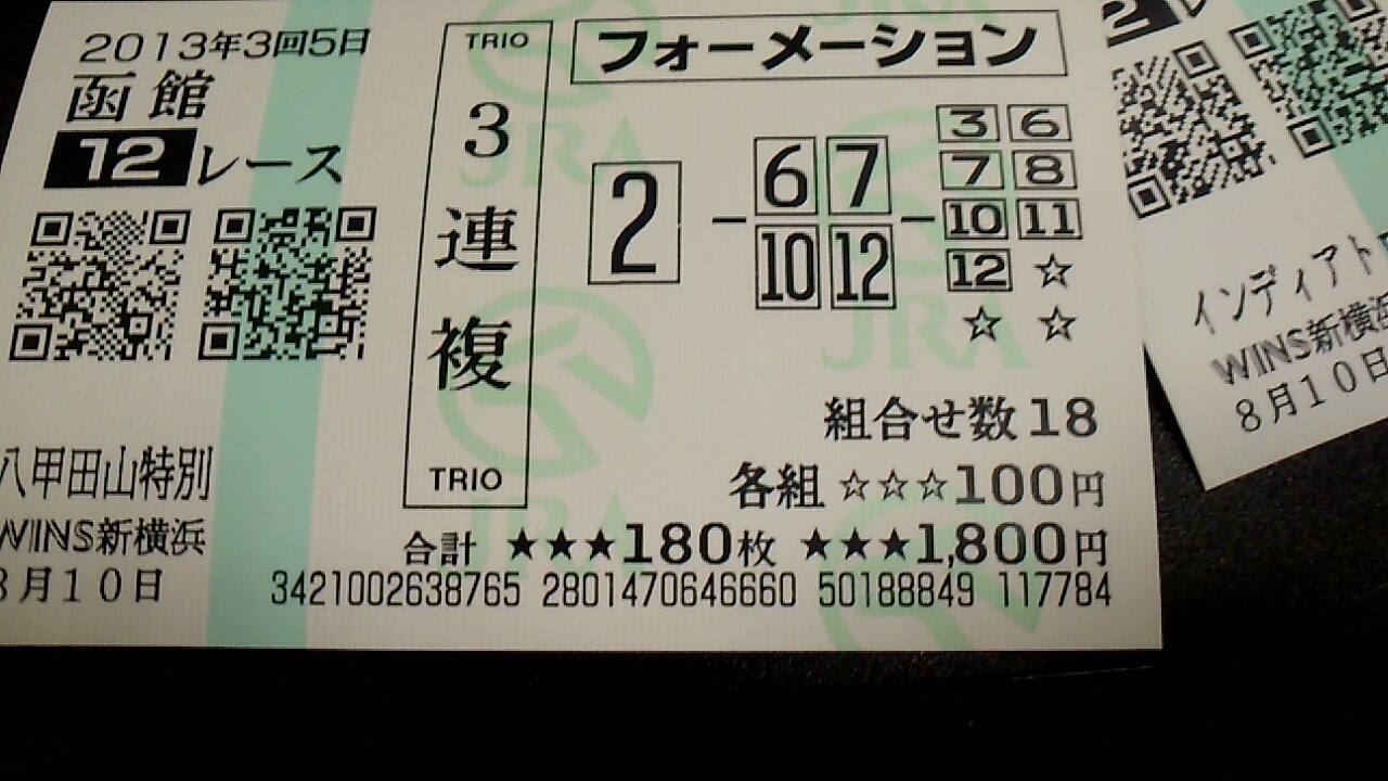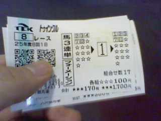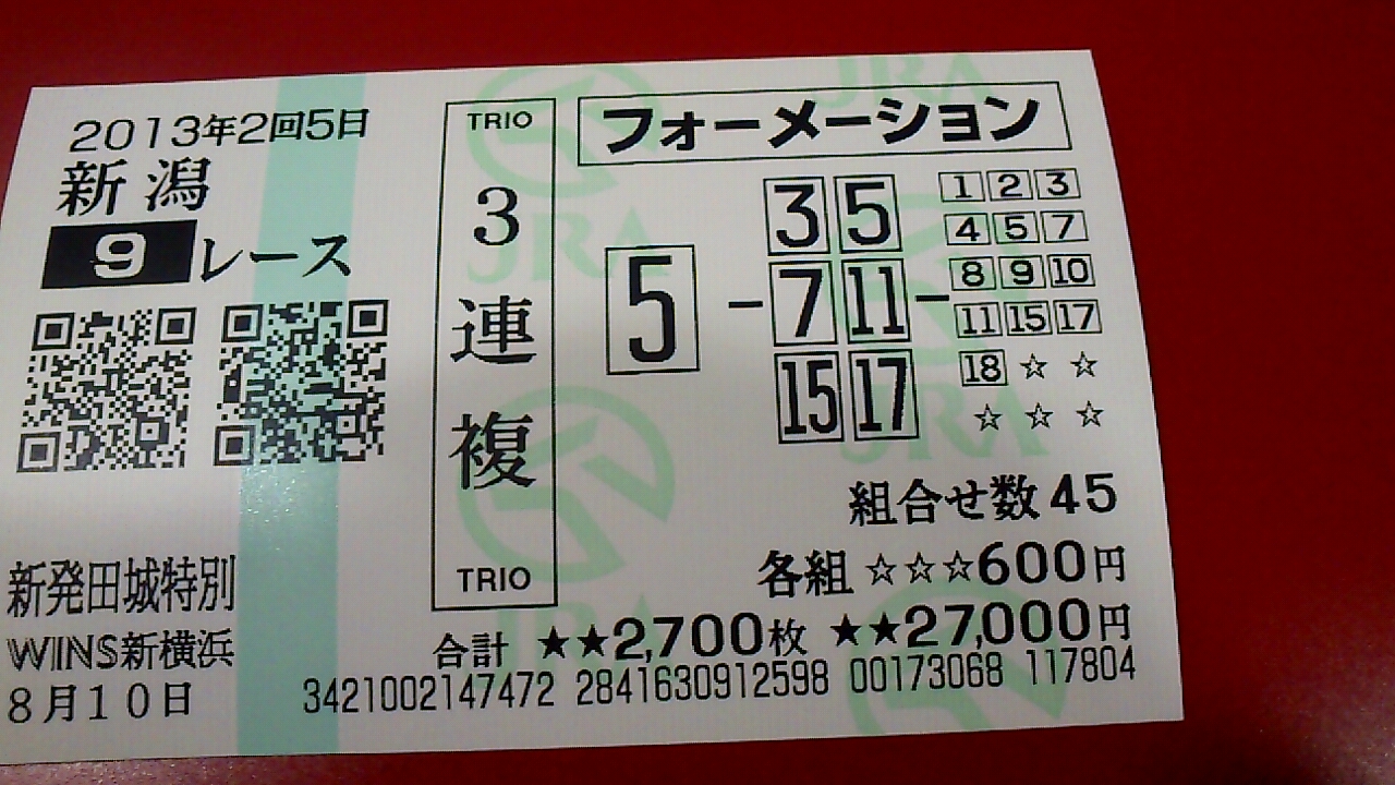 12 新潟 1R 3連複 05-08-12 100円 0円