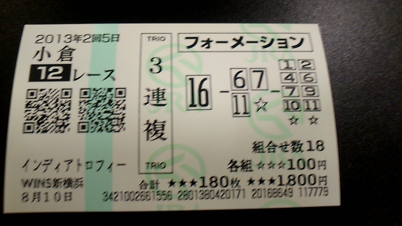 13小倉1R3連複 05-16-18100円0円