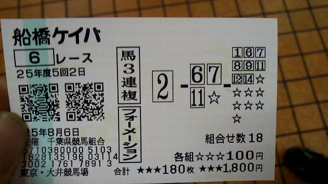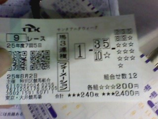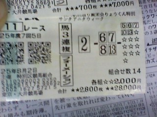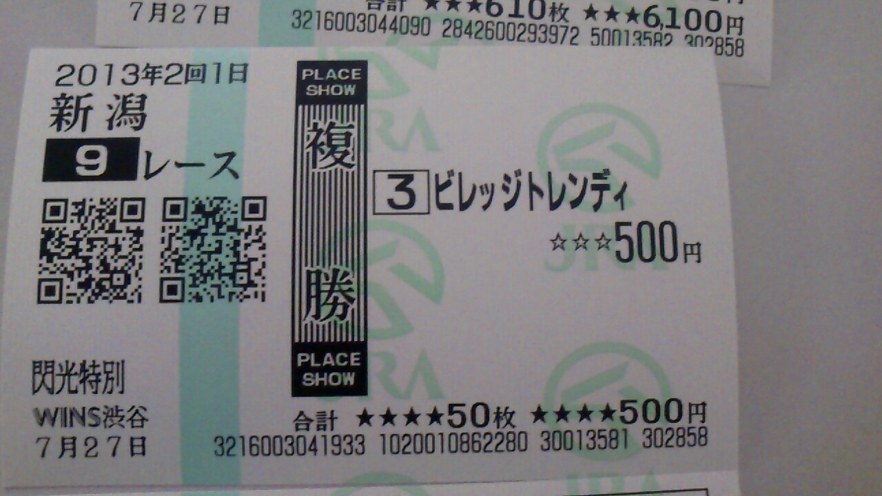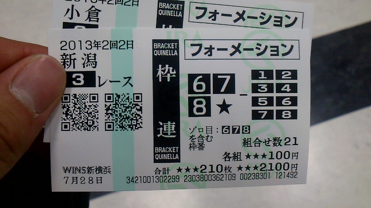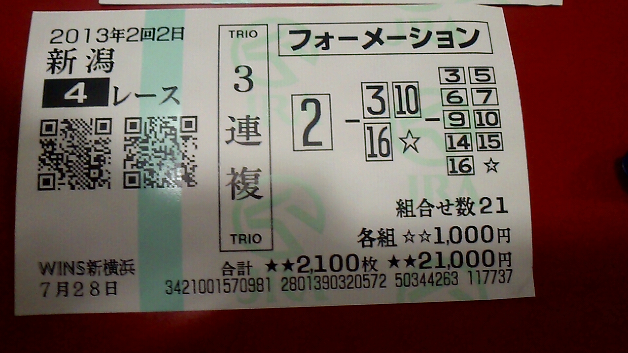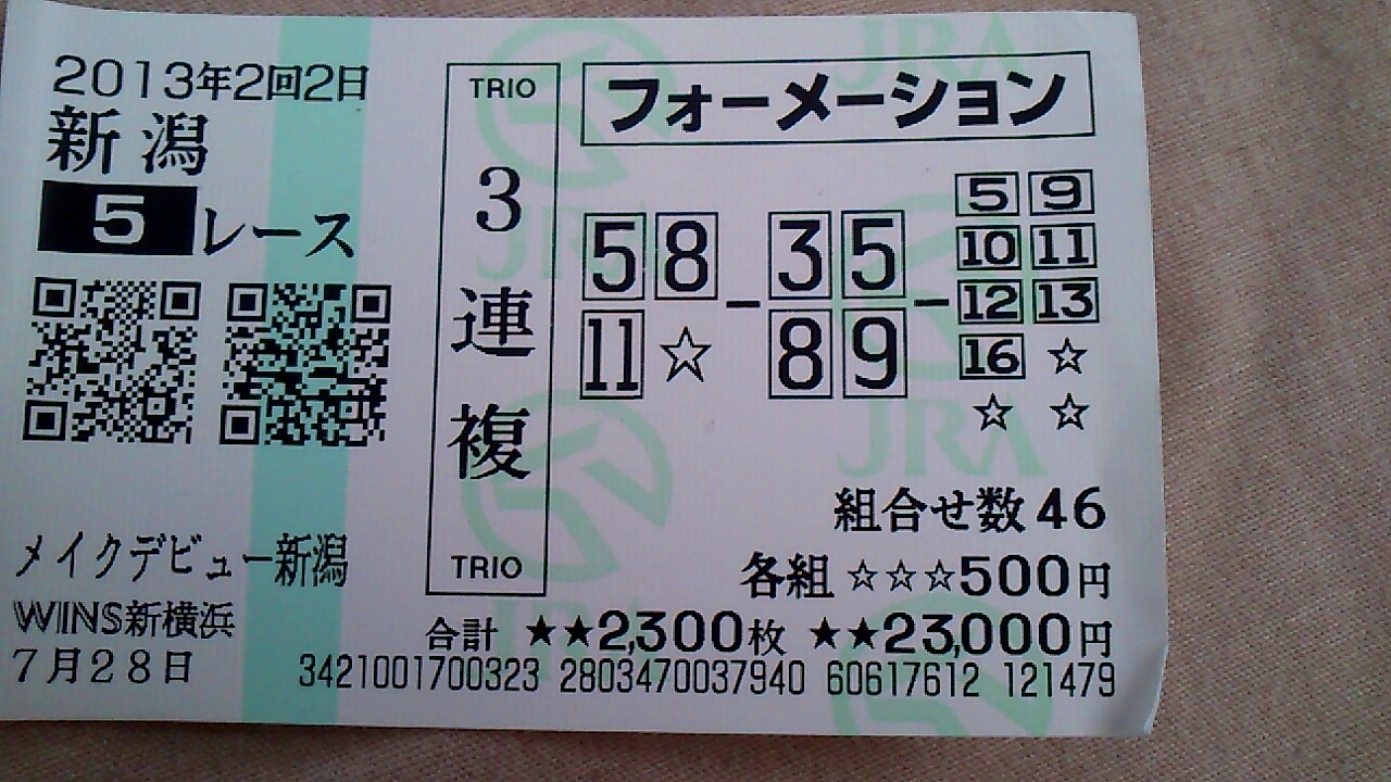 (1)新潟(土)12R3連複 フォーメーション馬1:16