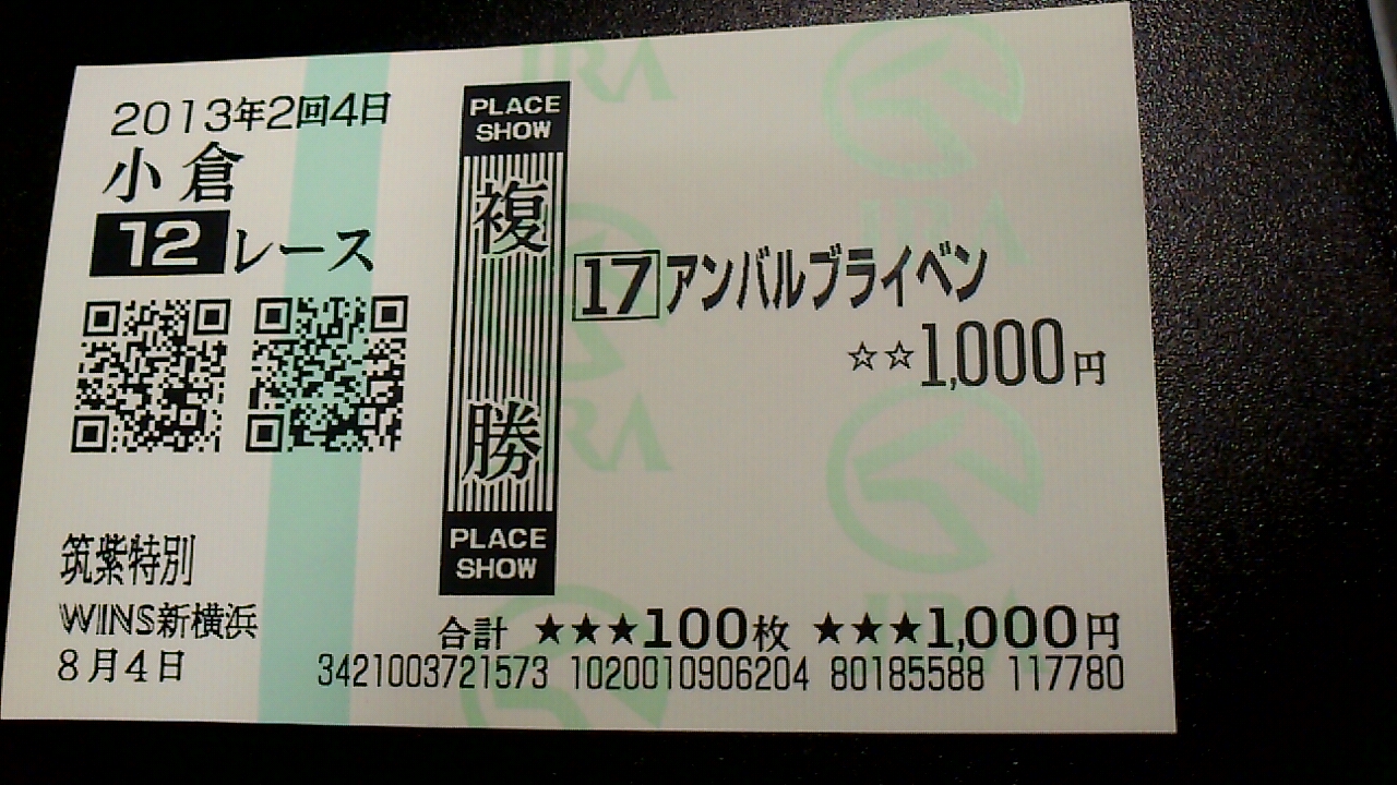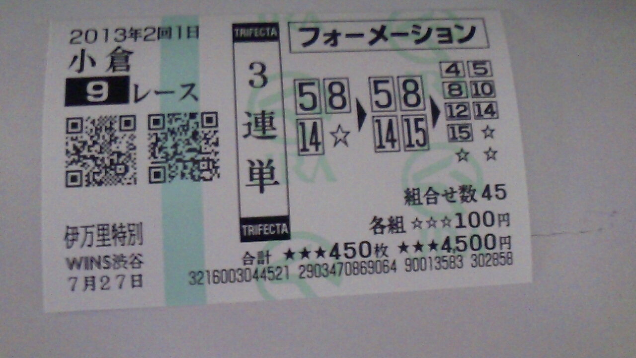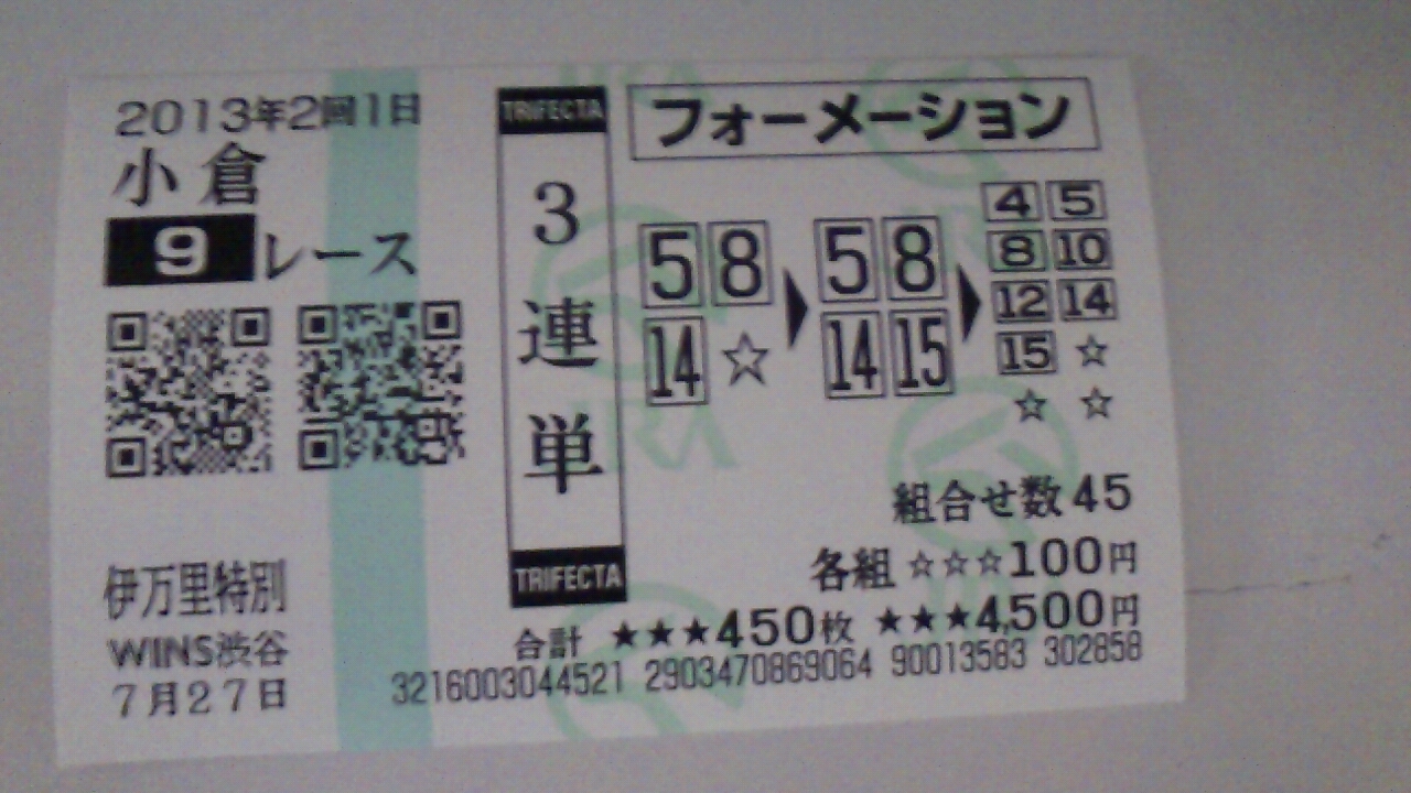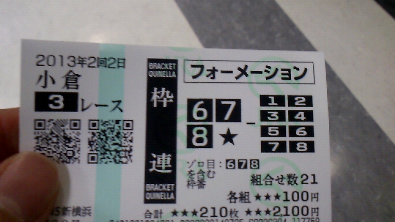 (3)小倉(土)1R3連複 フォーメーション馬1:05