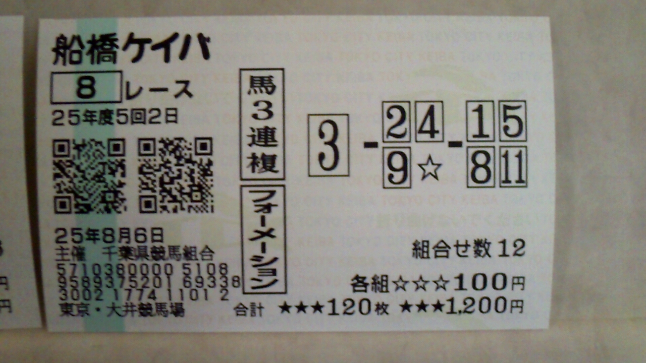 (1)新潟(土)12R枠 連 ながし軸枠: 8