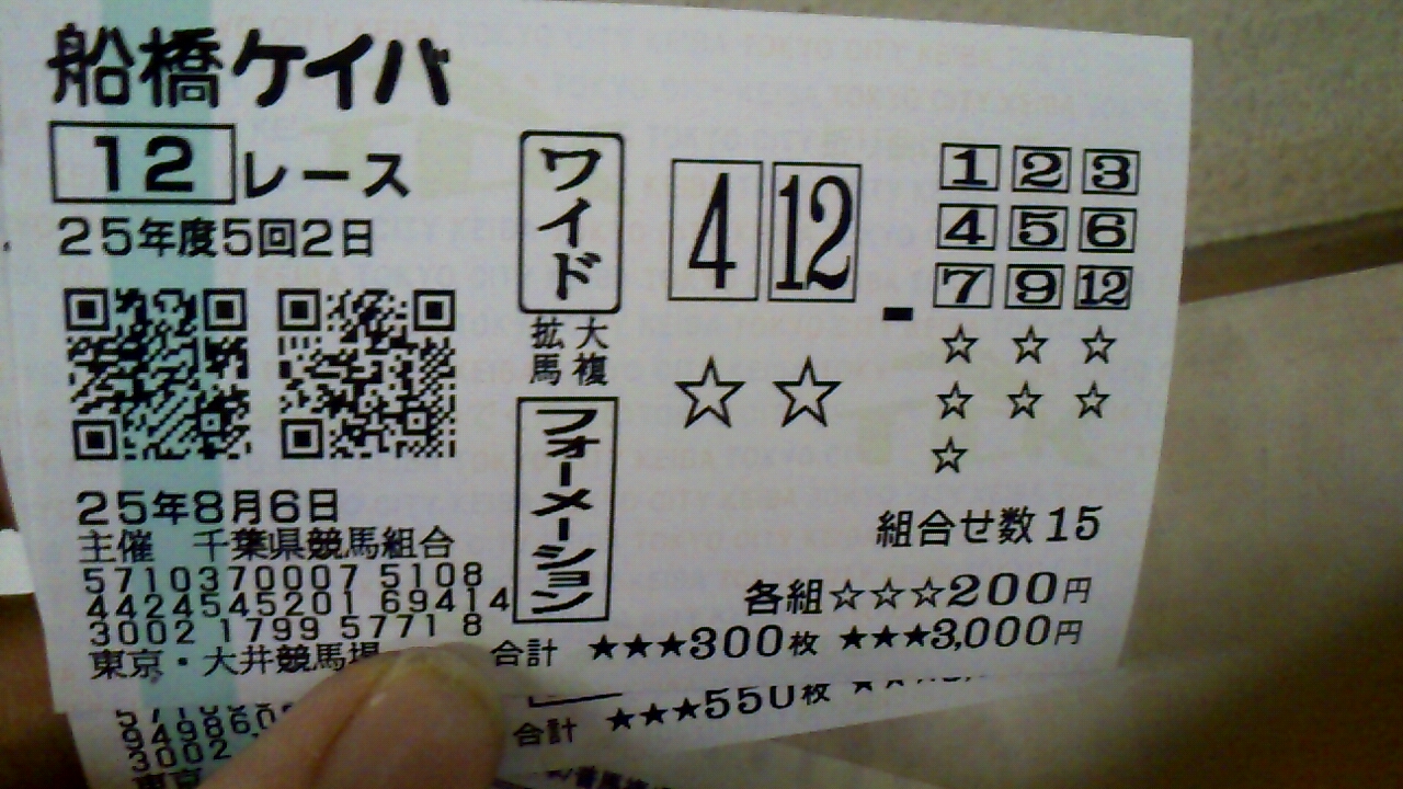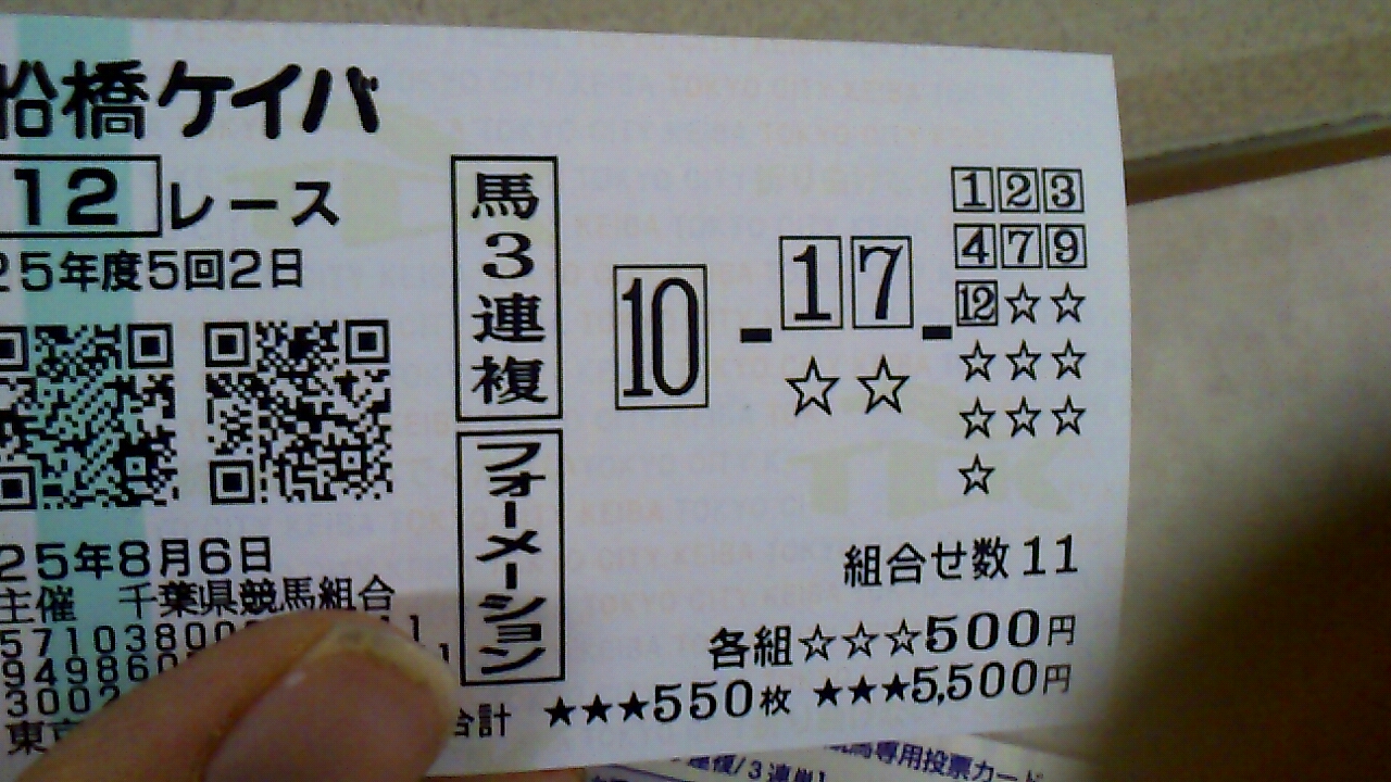 (10)新潟(土)2R3連複 軸1頭ながし軸馬:12
