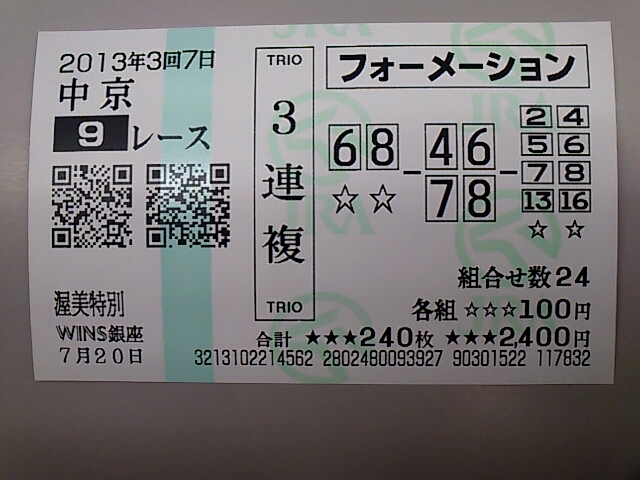 馬券は複勝、馬連、ワイド、三連複で。単勝や大勝負には向かない。
